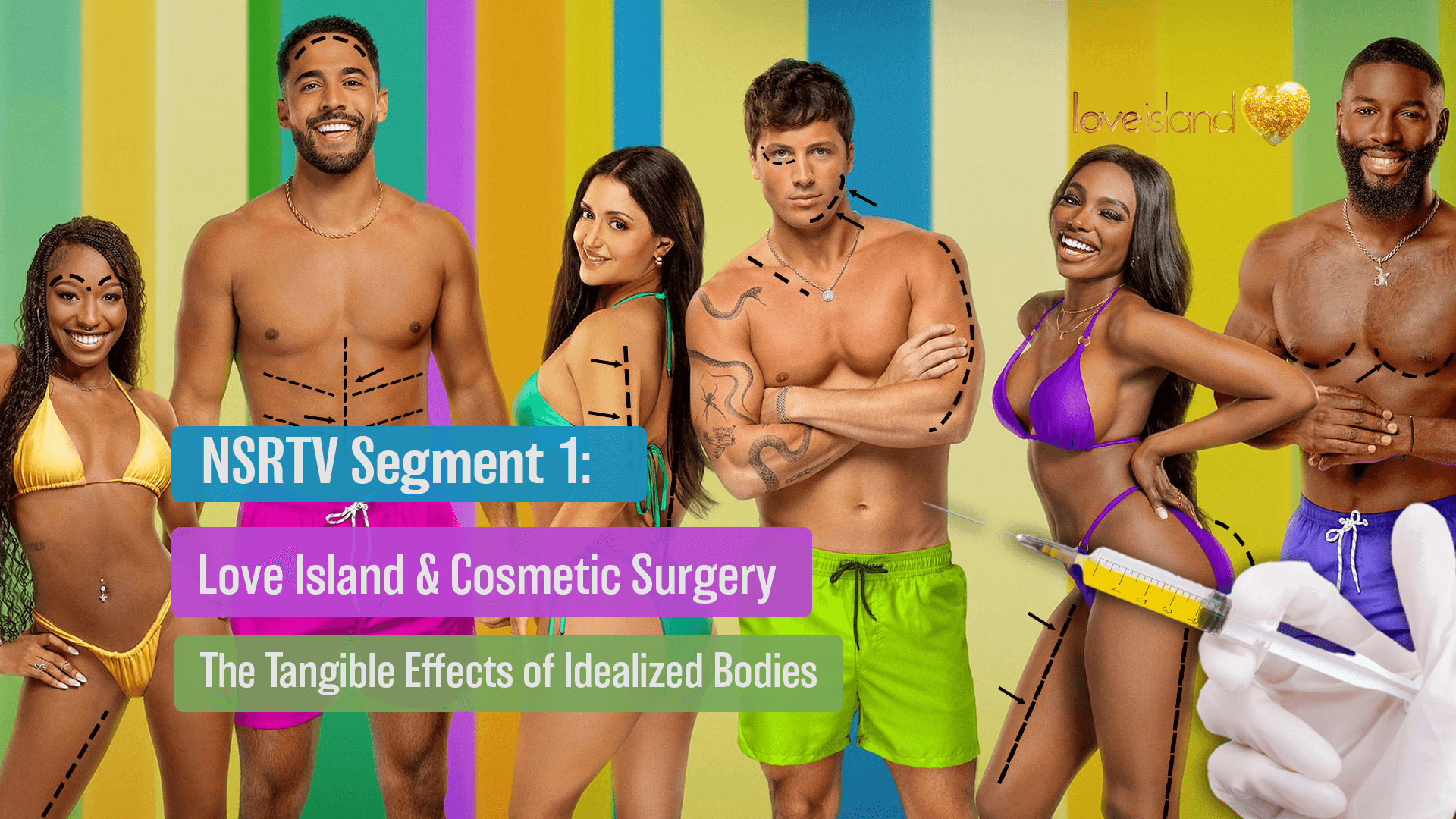 A satirical commentary highlighting how reality TV damages viewers’ body image and mental health focusing on leading shows Love is Blind, Too Hot to Handle, and Love Island. This 10:00 spot inspired by Last Week Tonight presents leading psychological and audience research to form a media critique.